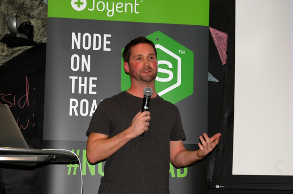 First on the list of presenters was TJ Fontaine, the newly minted Node.js Core team lead, replacing Isaac Schlueter who left to become the CEO of the new NPM startup (short for ‘Node Package Manager’, a registry largely responsible for the thriving Node.js ecosystem). His talk was centered around the road ahead – what is left to finish in Node before it can be declared v1.0, how companies and individuals using it can contribute and inform the process. There are multiple ways to make Node better at this point: reporting bugs as we are hitting them in production, contributing source for either enhancements or bug fixes, helping with the documentation (Node currently has a bit of a documentation problem). There are also multiple ways to ensure the community continues to thrive – Stack Overflow, IRCs, mailing lists, meetups. Not all of these options are equally appealing to all (TJ is not a fan of mailing lists or IRCs) – YMMV.