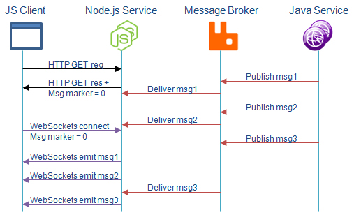 As a bonus, this approach works for cases where the client drops the WebSockets connection. When connection is re-established, it can use the same approach to catch up on the messages it has missed.